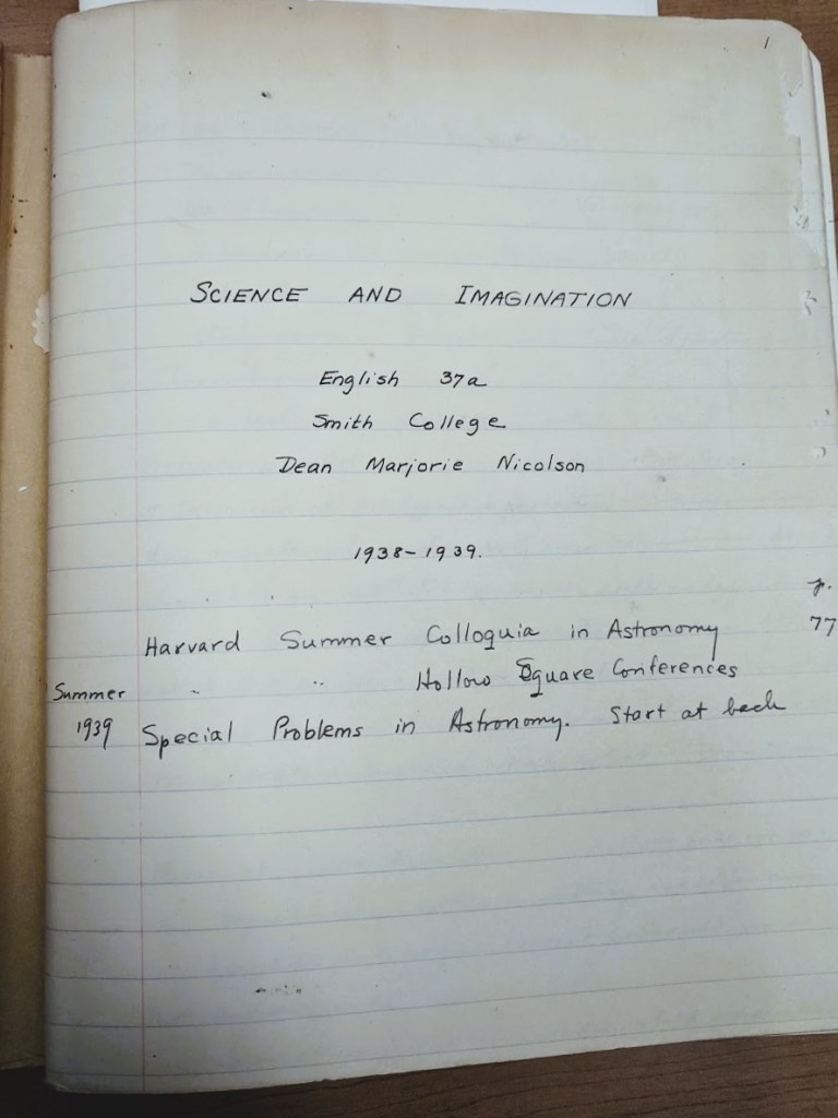 I did find Dorothy’s love for art and literature in me, though. In all her strive for education and shedding light on the Universe, I learned from the notebook that Dorothy was taking a course on Science and Imagination at Smith College while attending the Harvard Summer Colloquia in Astronomy. On one page, there were bullet points on What Happened to Prose Style? and another on the Anomalous Behavior of 3886 – 3930 Fe Multiplets. It was a curious combination, but it made sense. What I remember most about the notebook is that, on the inside front cover, Dorothy taped a 1938 newspaper clipping from The United Press: